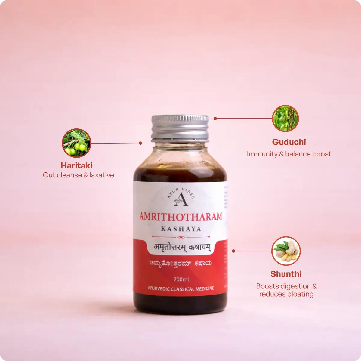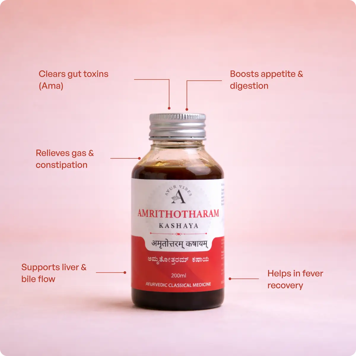 Take 24 to 48 ml of Kashayam mixed with an equal quantity of warm water.
