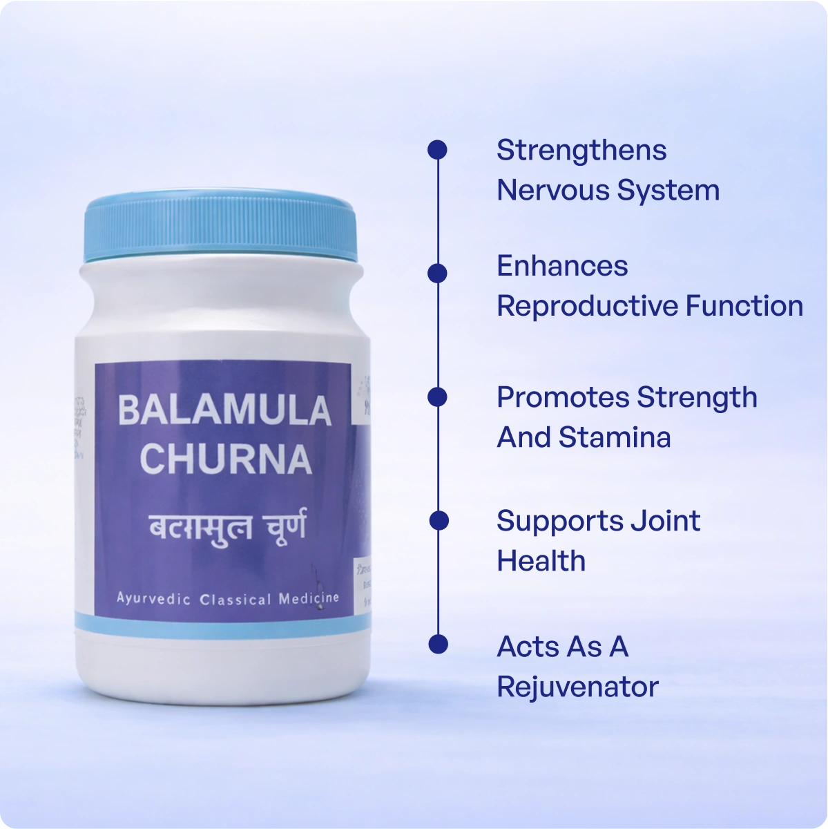 - Bala Moola Churna is a Ayurvedic nerve tonic made from Sida cordifolia root