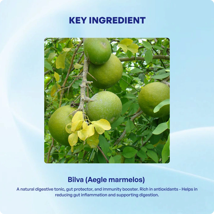 - Bilva Churna is a revered herbal powder made from Aegle marmelos (Bilva/Bael), traditionally used to support gut health and overall well-being.