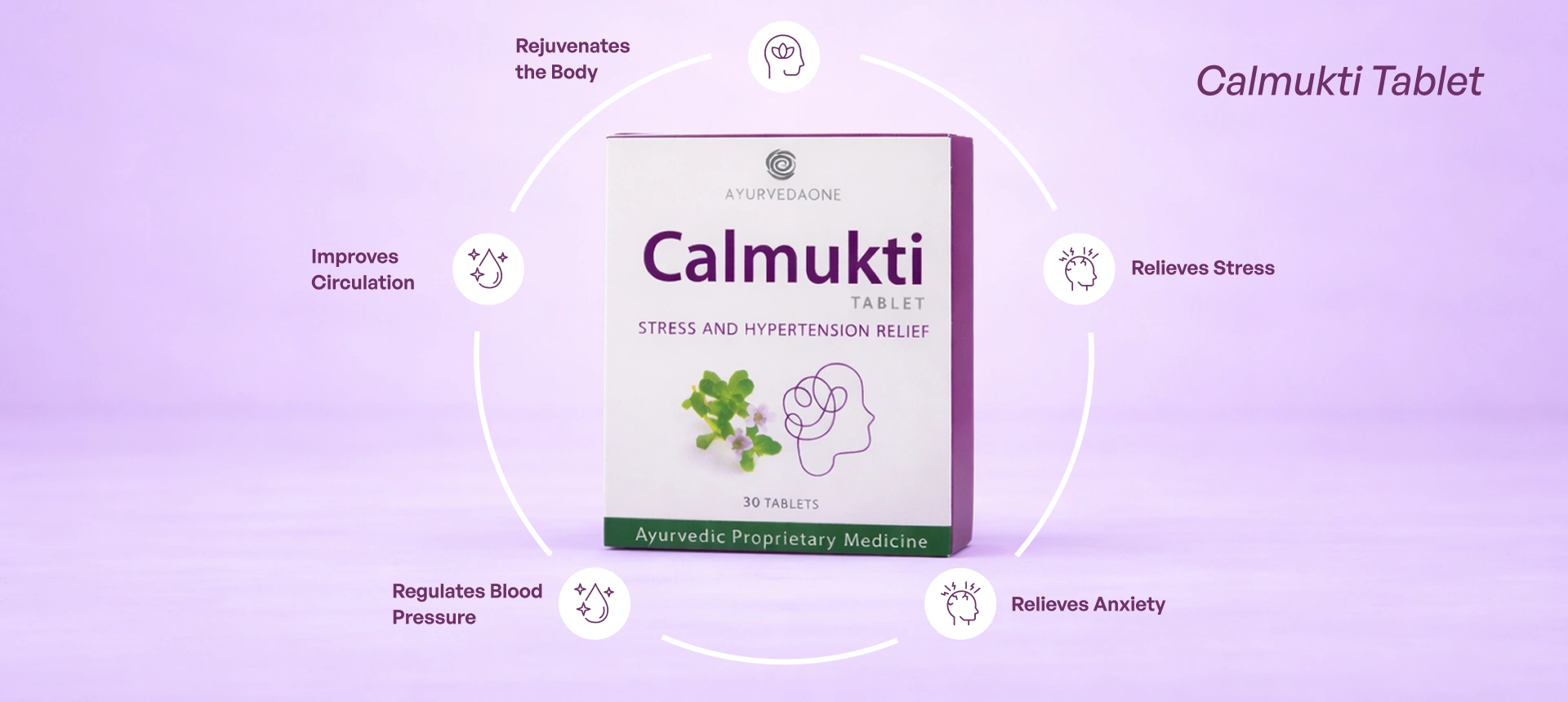 Calmukti Tablets are used to help relieve stress, anxiety, and support the management of mild to moderate hypertension.