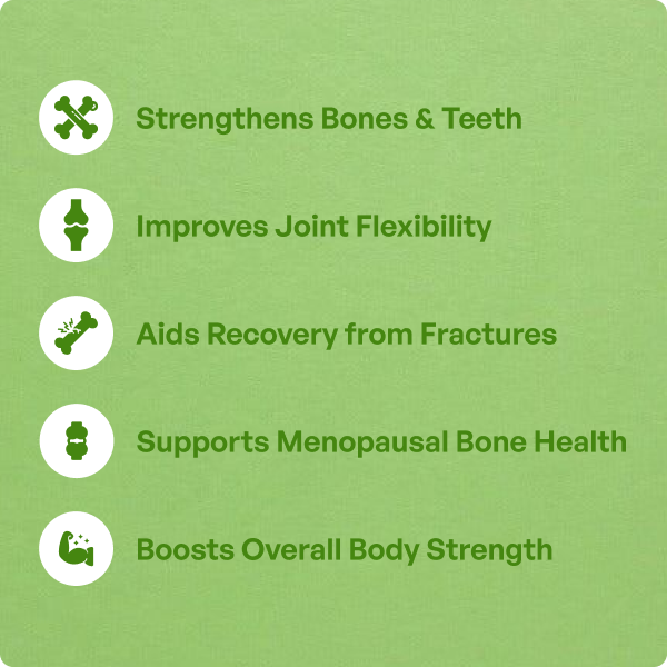 Yes, it works as an ayurvedic medicine for bone strength and may support bone density, making it beneficial for people at risk of osteoporosis.