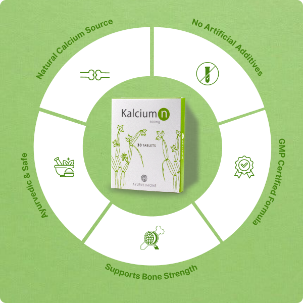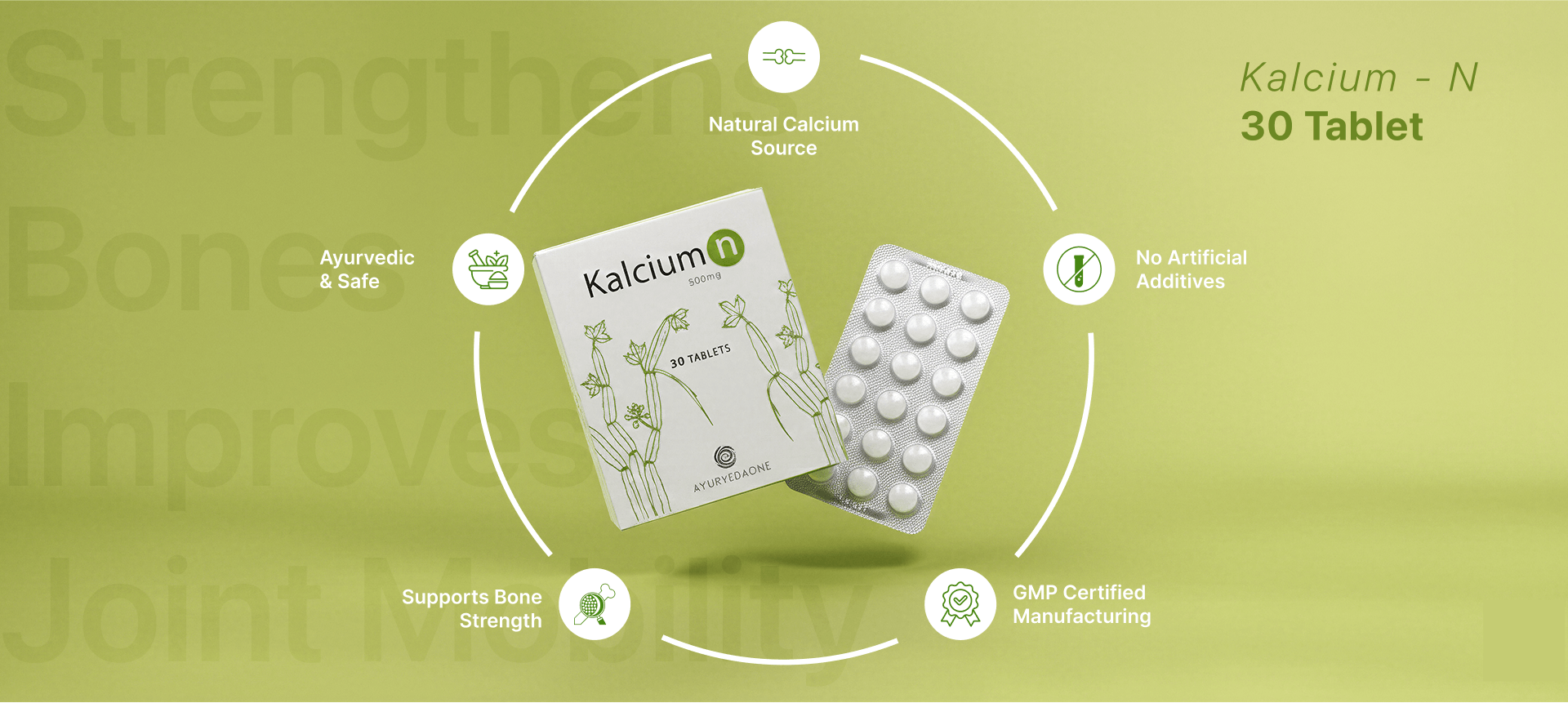 • Kalcium N is an Ayurvedic calcium supplement that strengthens bones, supports joint mobility, and improves musculoskeletal health.
