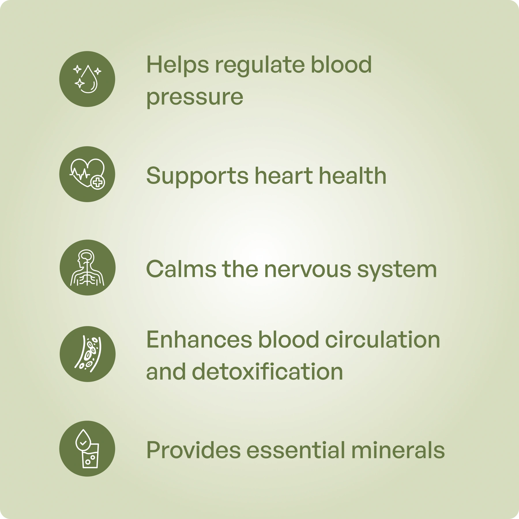 - Supports healthy blood pressure levels by naturally balancing cardiovascular functions