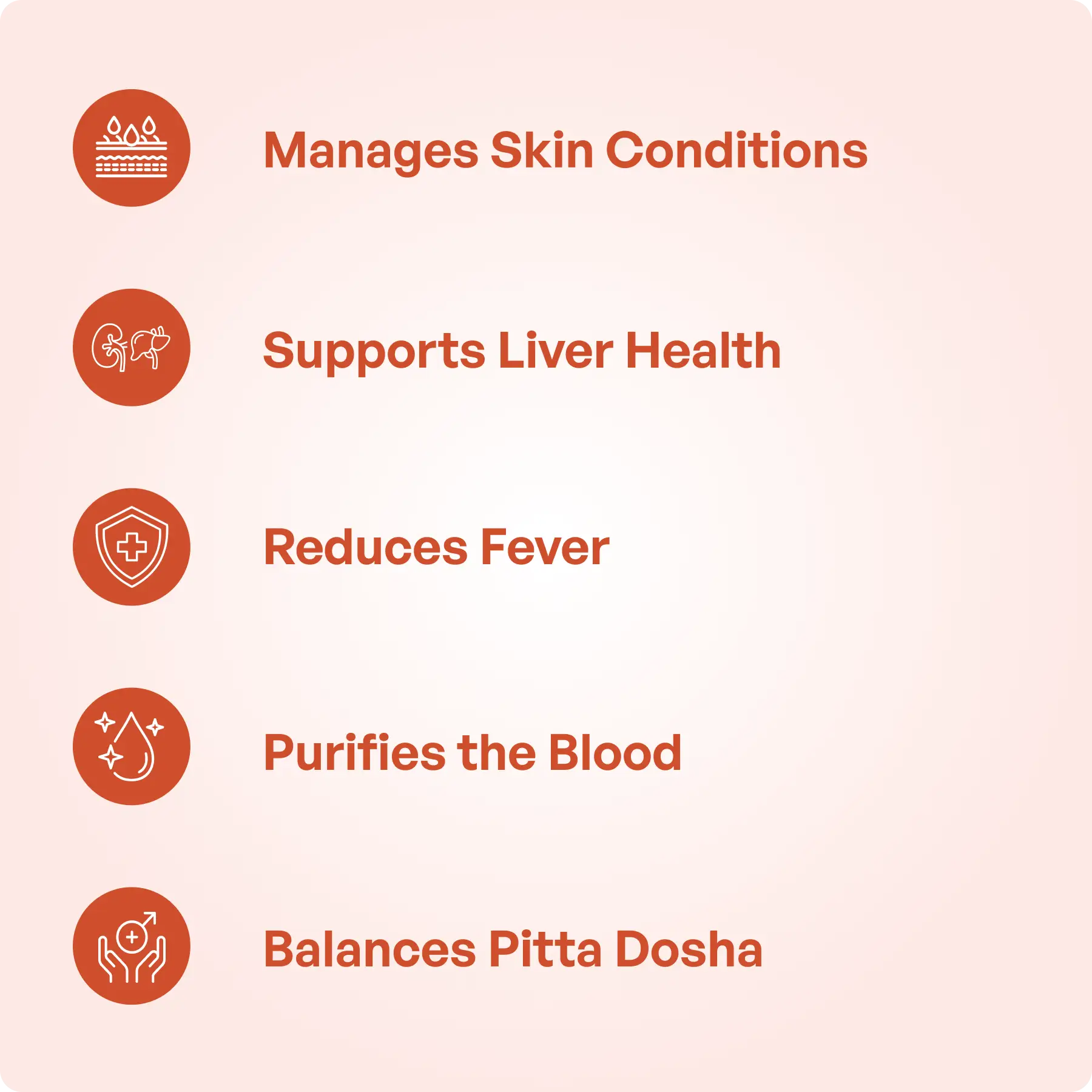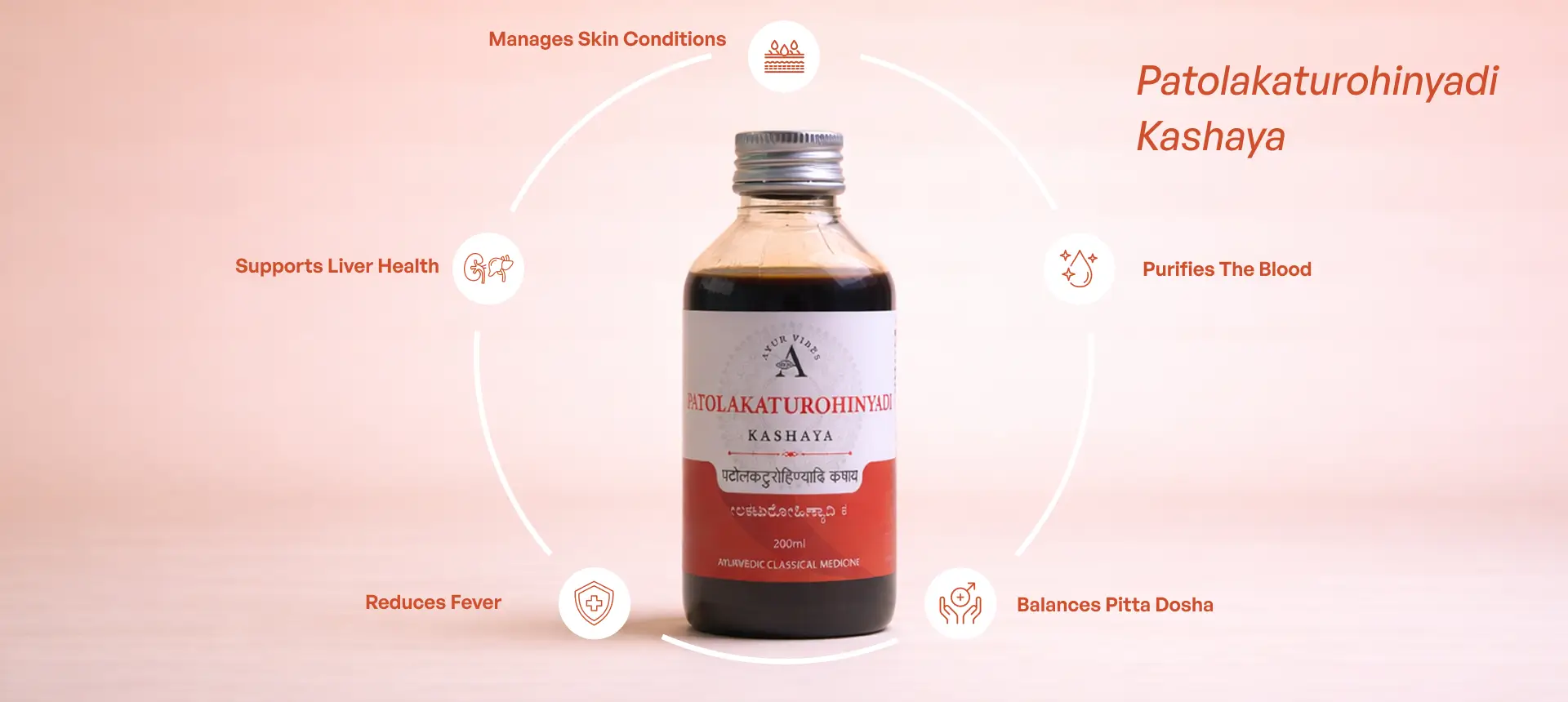 - Classical Ayurvedic decoction formulated to manage fever, jaundice, and skin conditions like scabies and pruritus