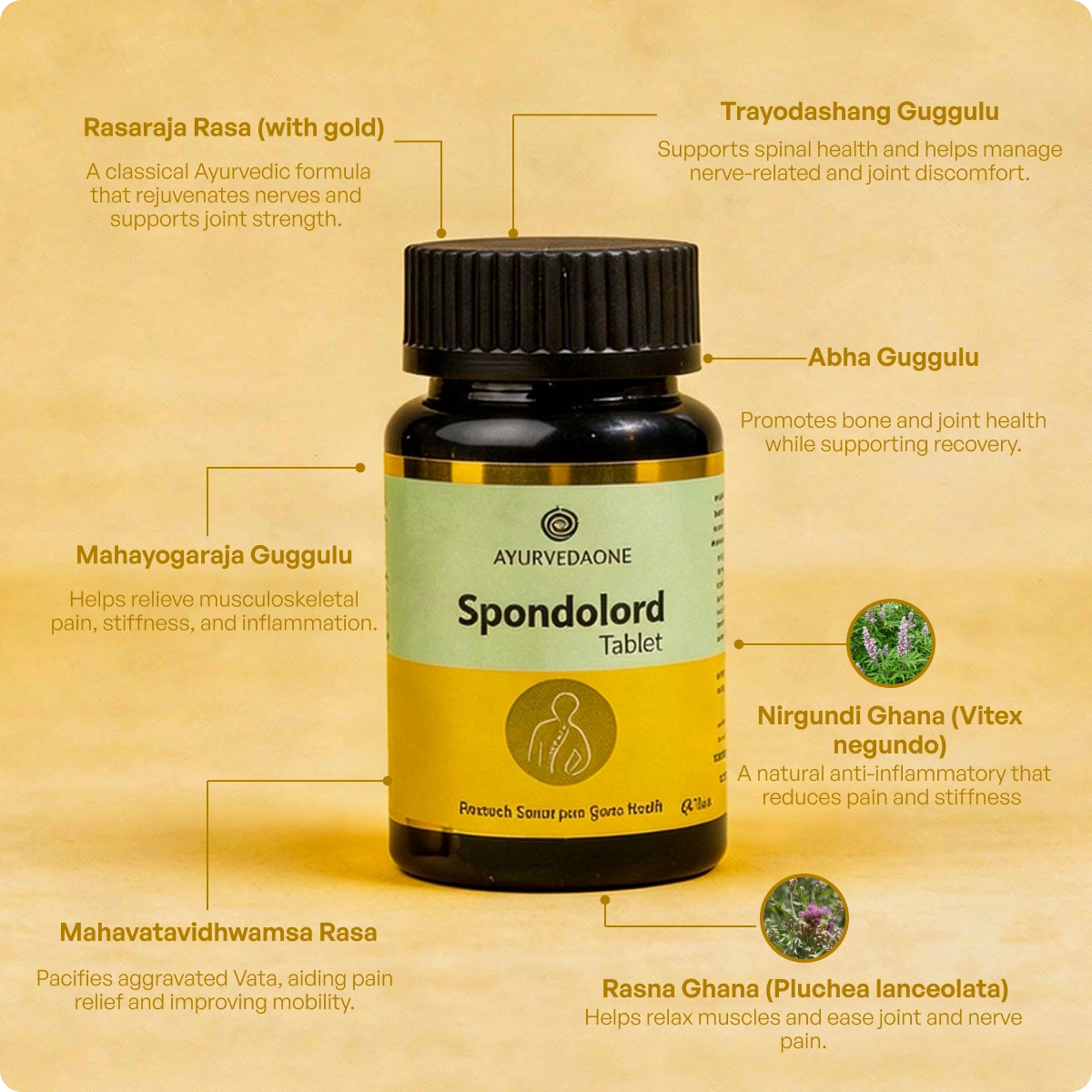 - Spondolord is a specialized Ayurvedic formulation designed to relieve stiffness, radiating pain, and restricted mobility caused by spondylosis and musculoskeletal disorders.